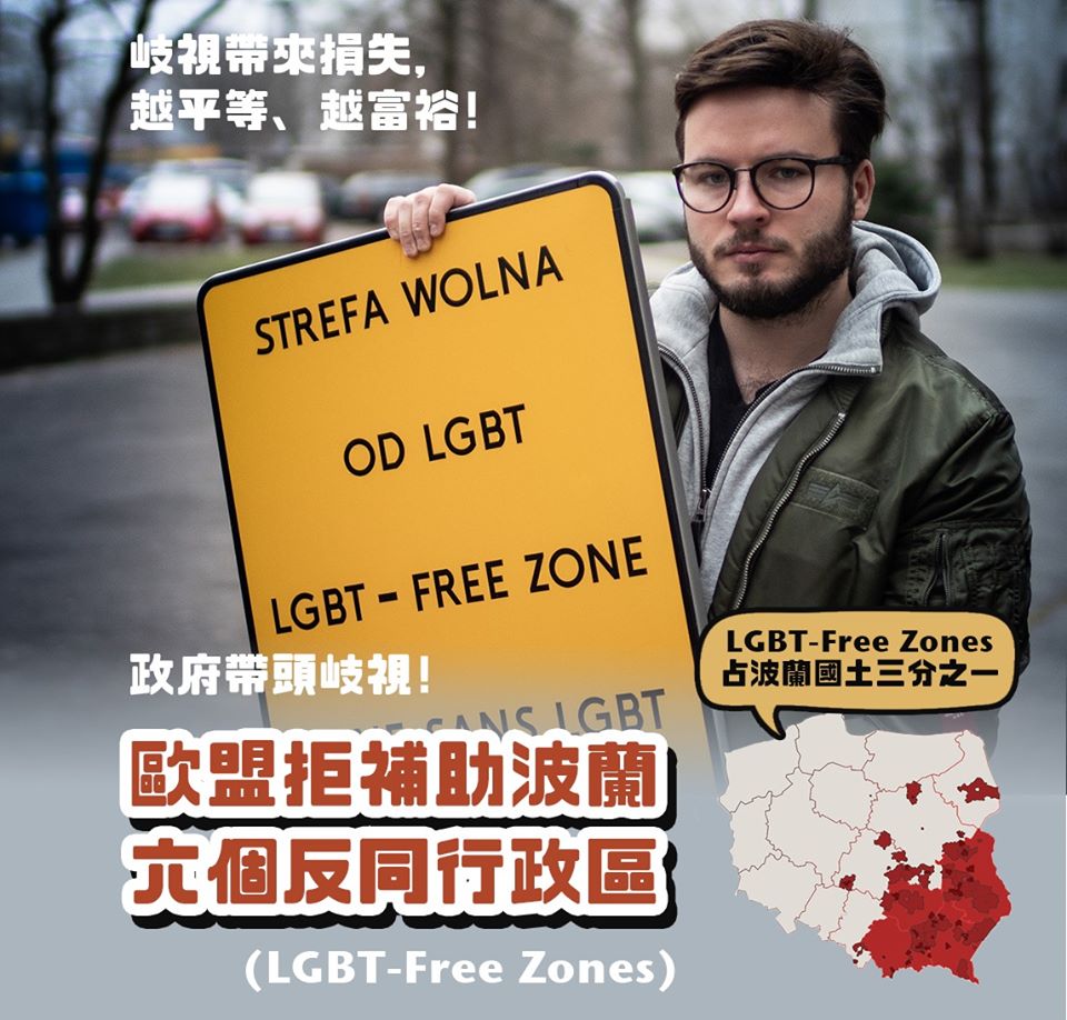 波蘭囿於宗教因素而在傳統上對LGBT族群接受度不高,近年在執政的「法律正義黨」(Prawo i Sprawiedliwość,簡稱PiS)推波助瀾下,波蘭社會對性少數的排斥態度日益惡化。甚至有部分地方政府推動當地為「無LGBT(意識形態)區」(LGBT-free zone),毫不遮掩對同性戀、雙性戀及跨性別者的歧視。